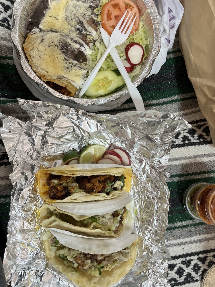 Todos servidos con cebolla, cilantro, guacamole, rabano y cebollinas. All come with onions, cilantro, guacamole, radishand, and cambray onion.